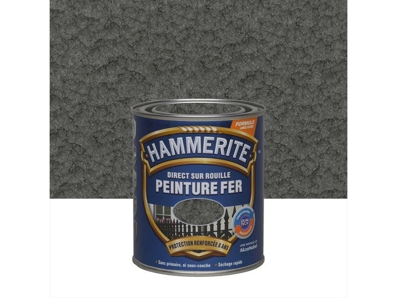 Peinture fer extérieur direct sur rouille, HAMMERITE, 0.75 L gris ardoise marteléHAMMERITE