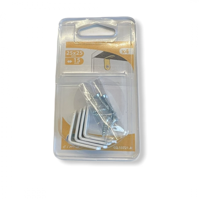 8,30 €- Lot de 4 Équerres d'assemblage 25x25mm Blanc + vis