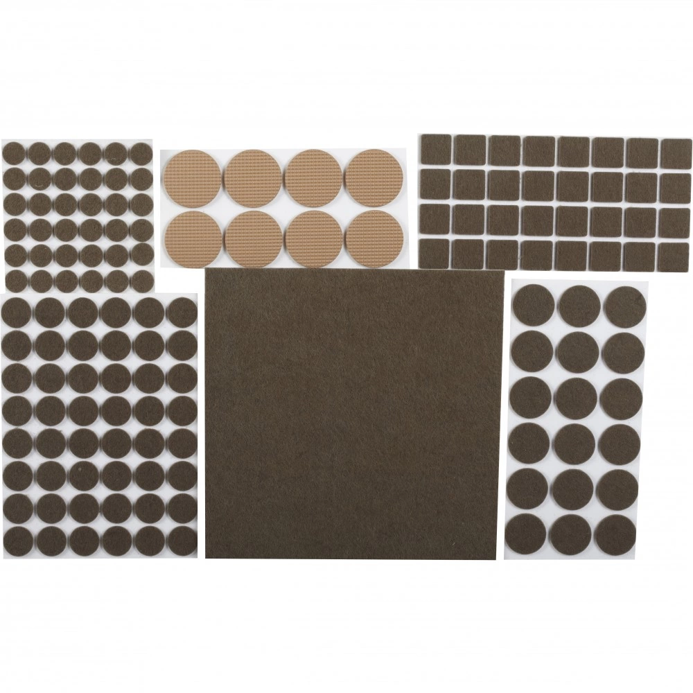 Lot de 120 patins feutres diam. 15 et 18 mm, carré de 19 x 19 mm marron
