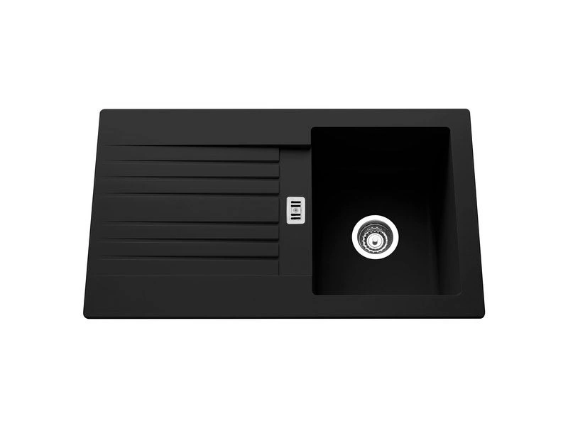Evier à encastrer 1 bac avec égouttoir, résine, noir SOLO