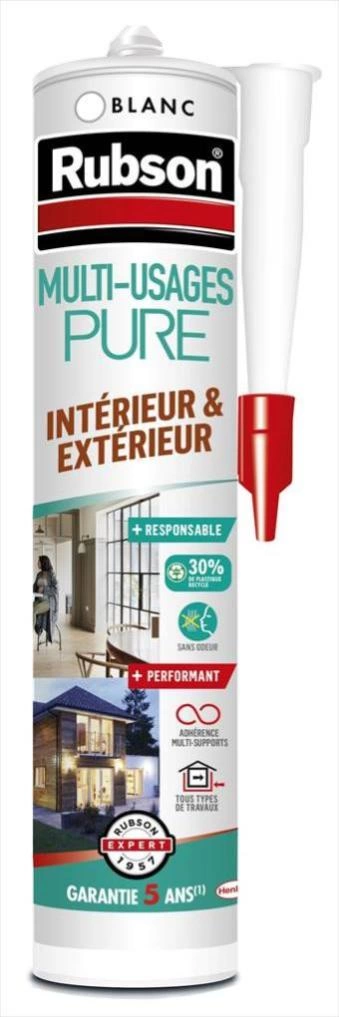 Mastic silicone multi usage intérieur & extérieur. Mise dans une cartouche fabriquée à partir de 30% de plastique recyclé.