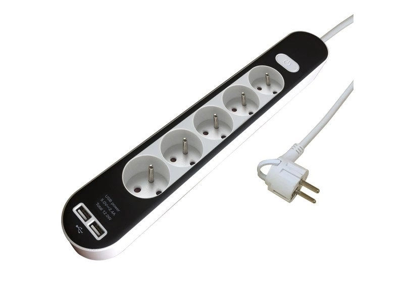 Multiprise Usb Filaire, 5 Prises Blanc / Noir, 1.5M, Lexman