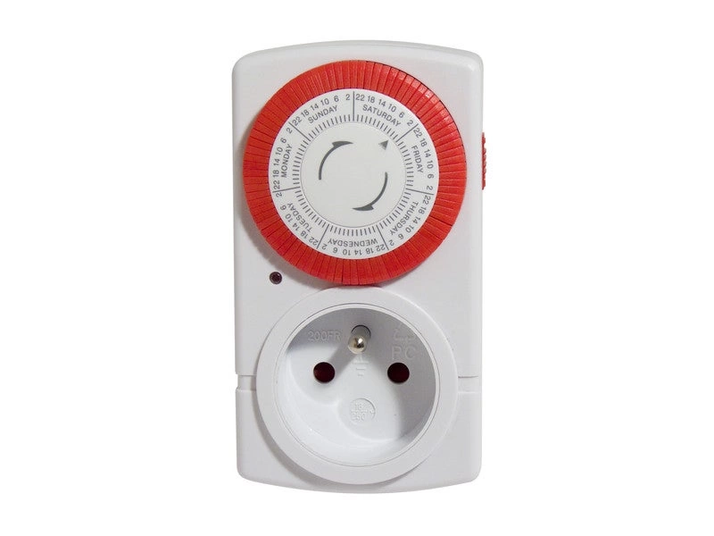 - Descriptif : Programmateur mécanique hebdomadaire. 1 à 42 cycles marche-arrêt par semaine- Segments de 2h - Max. 3500W - Utilisation intérieure - 1 prise 16A - Blanc.