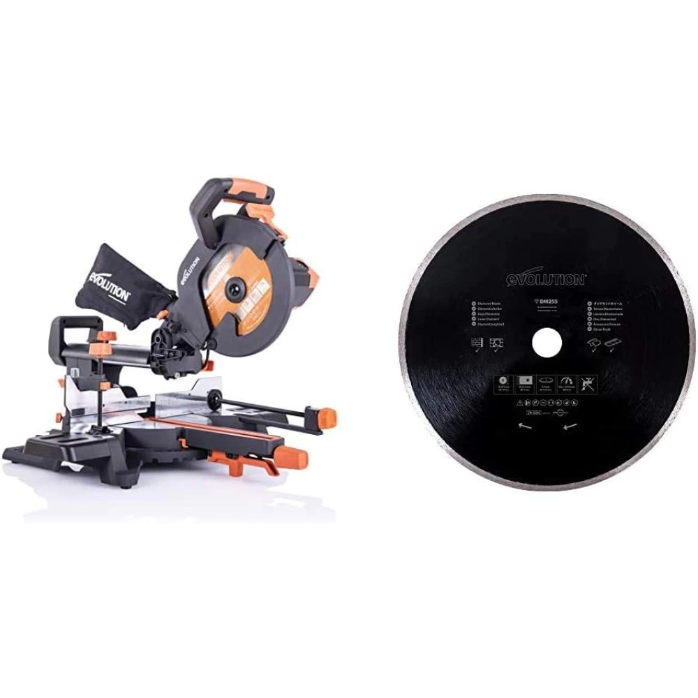 Scie à onglet radiale, EVOLUTION R210SMS-300+ multi-matériaux, 210 mm 1500 watts