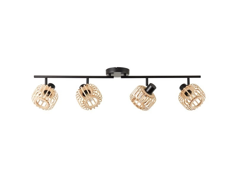 Rampe 4 spots en métal et bambou, Pécan, INSPIRE