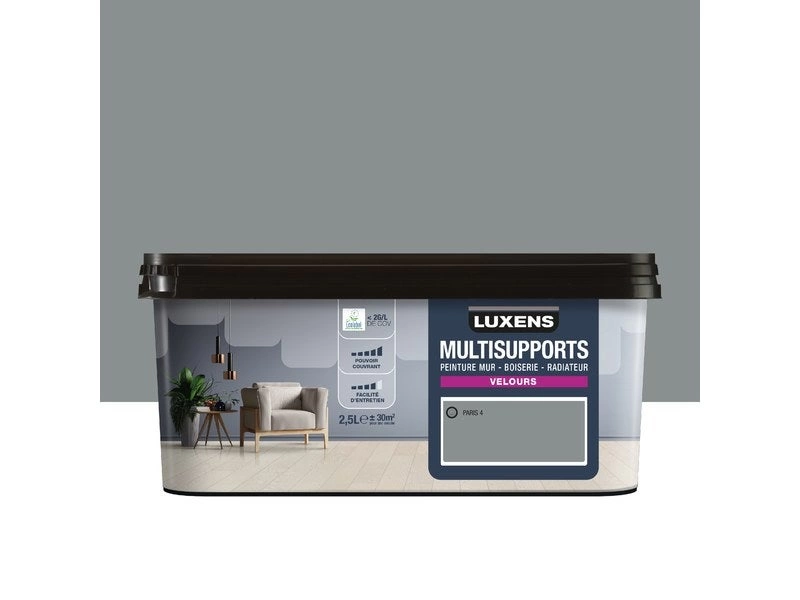 Peinture mur boiserie radiateur LUXENS smoke 6 Satiné 2.5 L