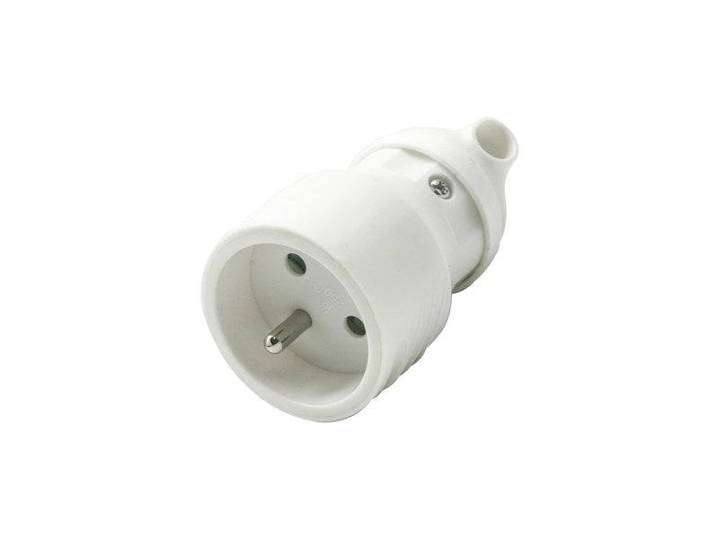 Fiche électrique femelle 2 pôles + terre, connexion sur le côté, 16 A, blanc