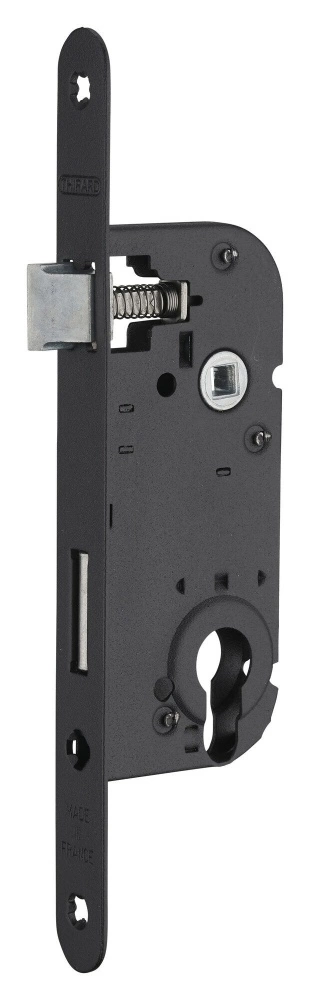 Serrure à encastrer réversible, axe 40x70 mm bec de cane, finition noir