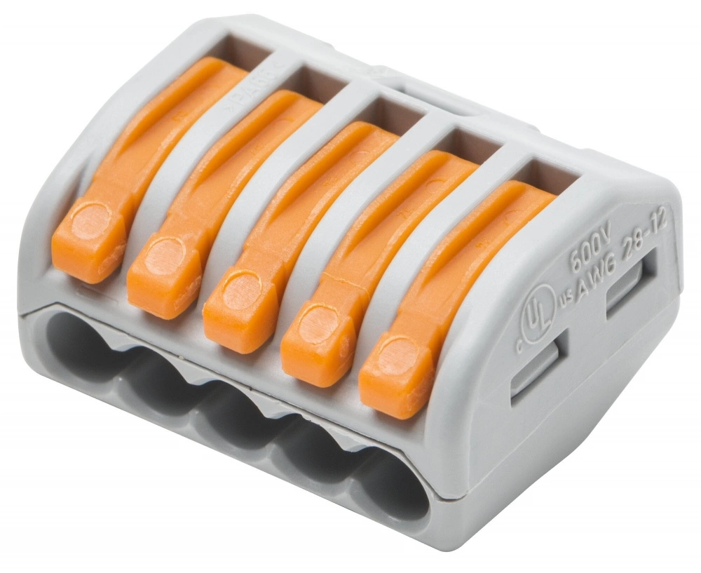 Lot de 5 bornes automatiques à levier pour rigide et souple, WAGO, 2.5 mm²
