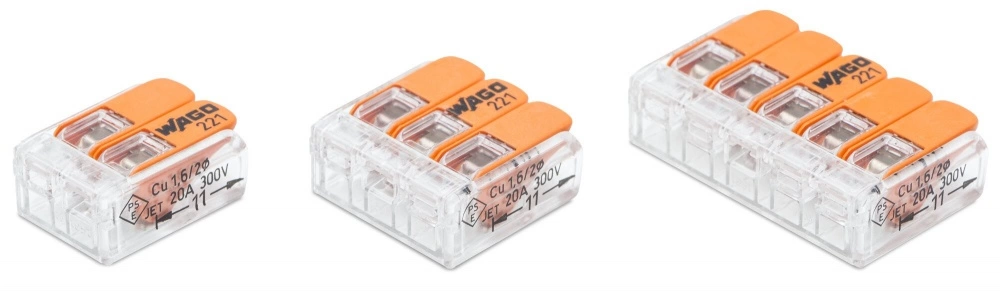 Lot de 5 bornes automatiques à levier pour rigide et souple, WAGO, 2.5 mm²