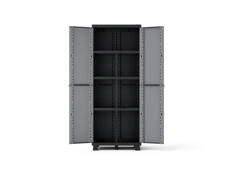 Armoire haute, multiusage, en polypropylène 3 étagères SPACEO, gris et noir, l.68 x H.170 x P.39 cm