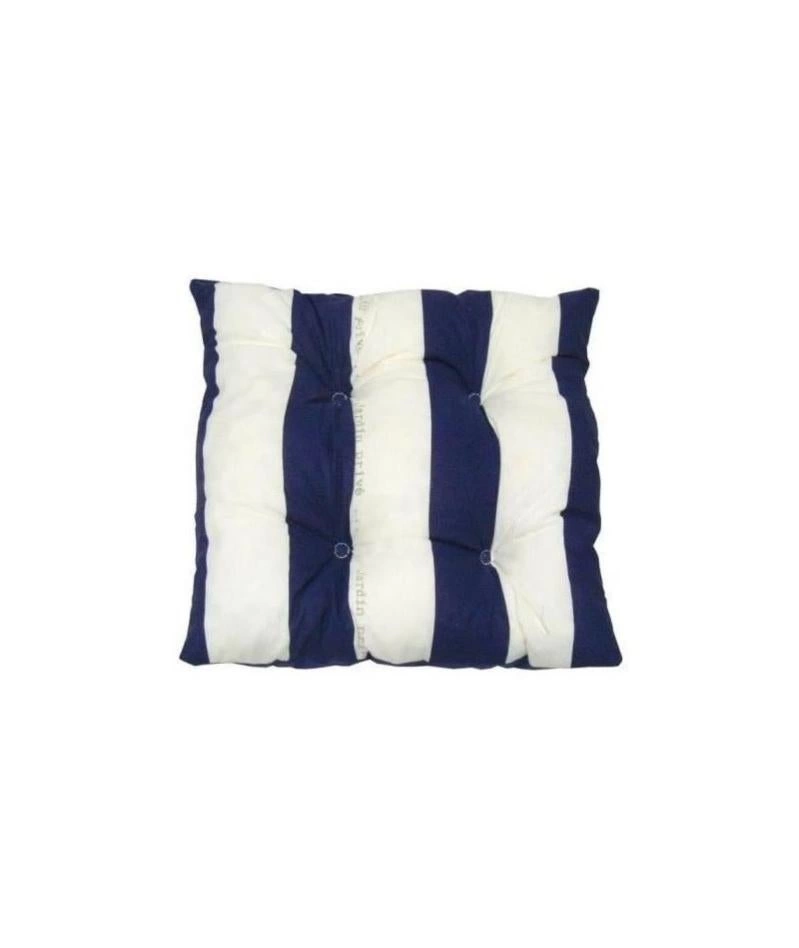 8,30 €JARDIN PRIVE Galette de chaise matelassée Cancale JP - Bleu - 38 x 38 x 8 cm - 100% Coton 140g/m² - Une face rayée bleu et blanc et une face unie bleue - Idéal pour tous types de chaises - Certification oeKOTEX - Fabriqué en France.
