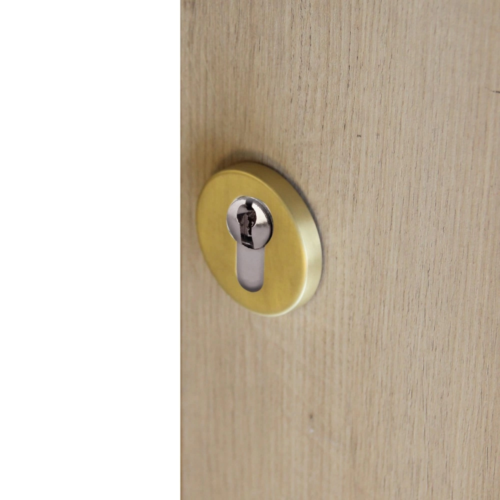 Paire de rosace de fonction cylindre en acier finition laitonné satiné.